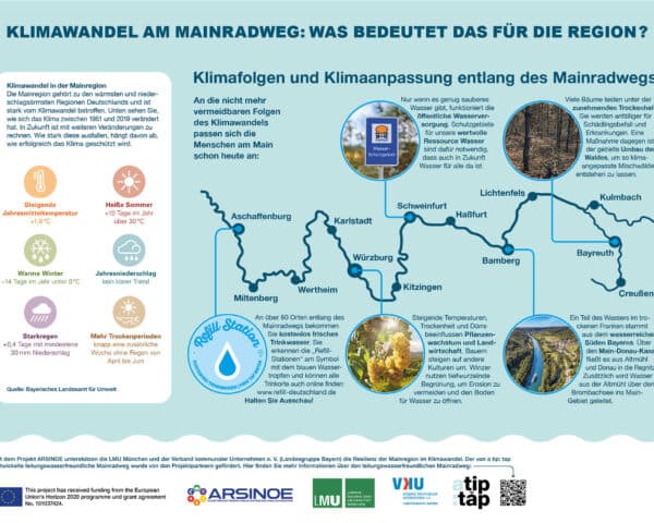 Ein Leitungswasserfreundlicher Radweg hat die Vision, alle 10 Kilometer eine Möglichkeit zu schaffen, die Trinkflasche mit Leitungswasser aufzufüllen. Durch die Installation von Refill-Stationen und öffentlichen Trinkbrunnen, Bewusstseinsbildung für den Wert von Trinkwasser, und die Einbindung von Kommunen, Wasserversorgern und lokalen Geschäften wird so nachhaltiger Tourismus gefördert und zur Klimaanpassung beigetragen.